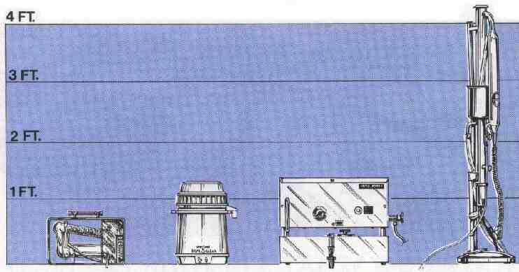 All units shown in relative sizes as specified in manufacturer's literature.