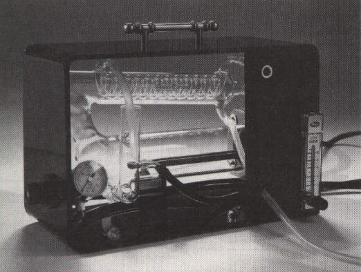 The compact Rain CrystalTM, no larger than most automatic coffee makers, arrives completely assembled in its PlexiglasR case, Automatic and portable, the Rain CrystalTM is easy to use. Simply plug it into a standard outlet, attach it to a water faucet by means of the quick-fit coupling provided, set the medical-quality flowmeter, and walk away with the assurance that the purest of water is being automatically produced at a fraction of the cost of bottled water. Should the water pressure fail, the Burnout Protection Switch eliminates malfunction.